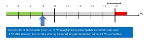 - b) Hvis dit IR termometer har en nøjagtighed på +/- 3 °C og din måling viser -1 °C eller mere, skal du efterkontrollere med et indstikstermometer. Ellers risikerer du at temperaturen i virkeligheden er over de +5 °C som er grænsen.
