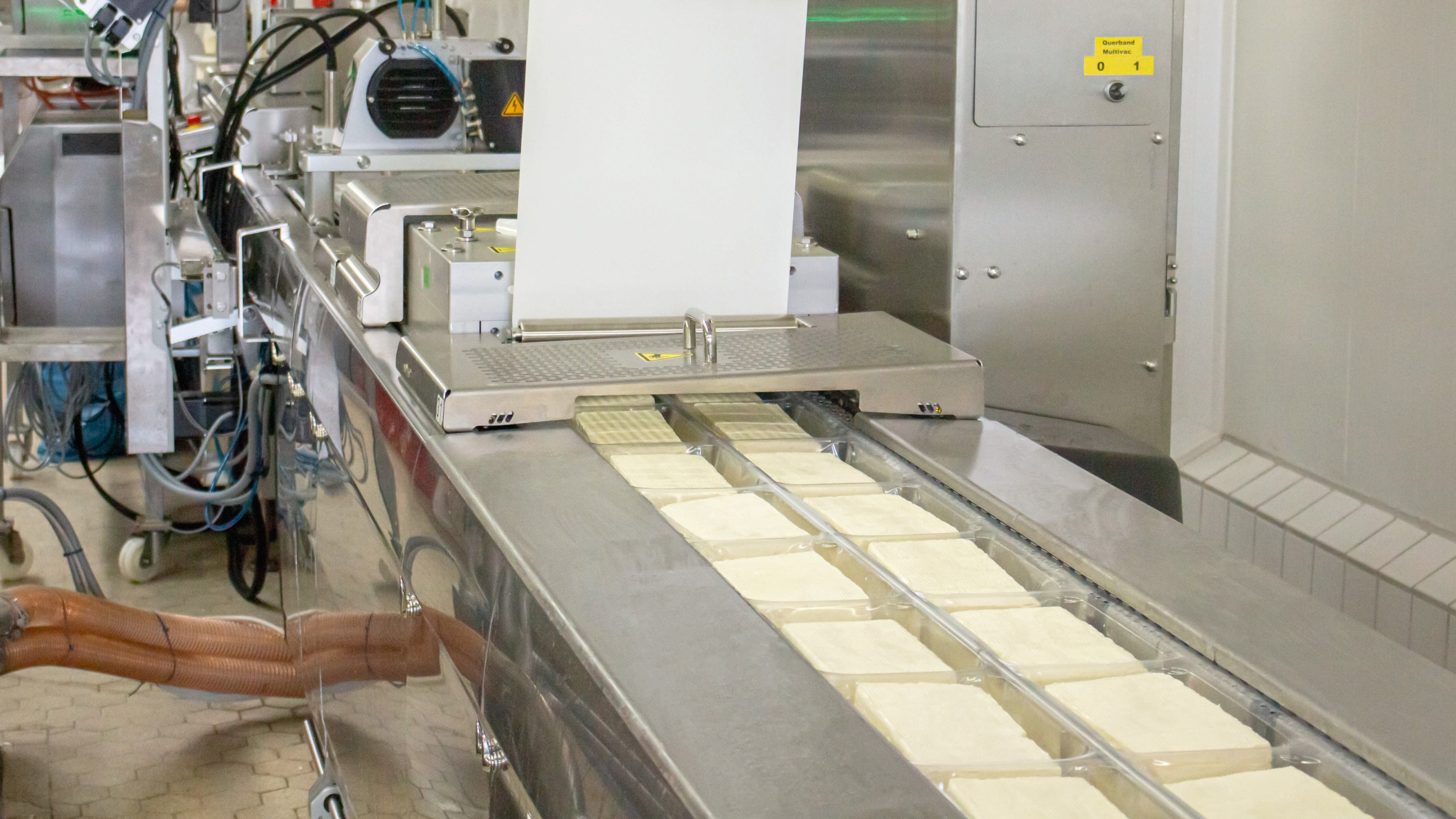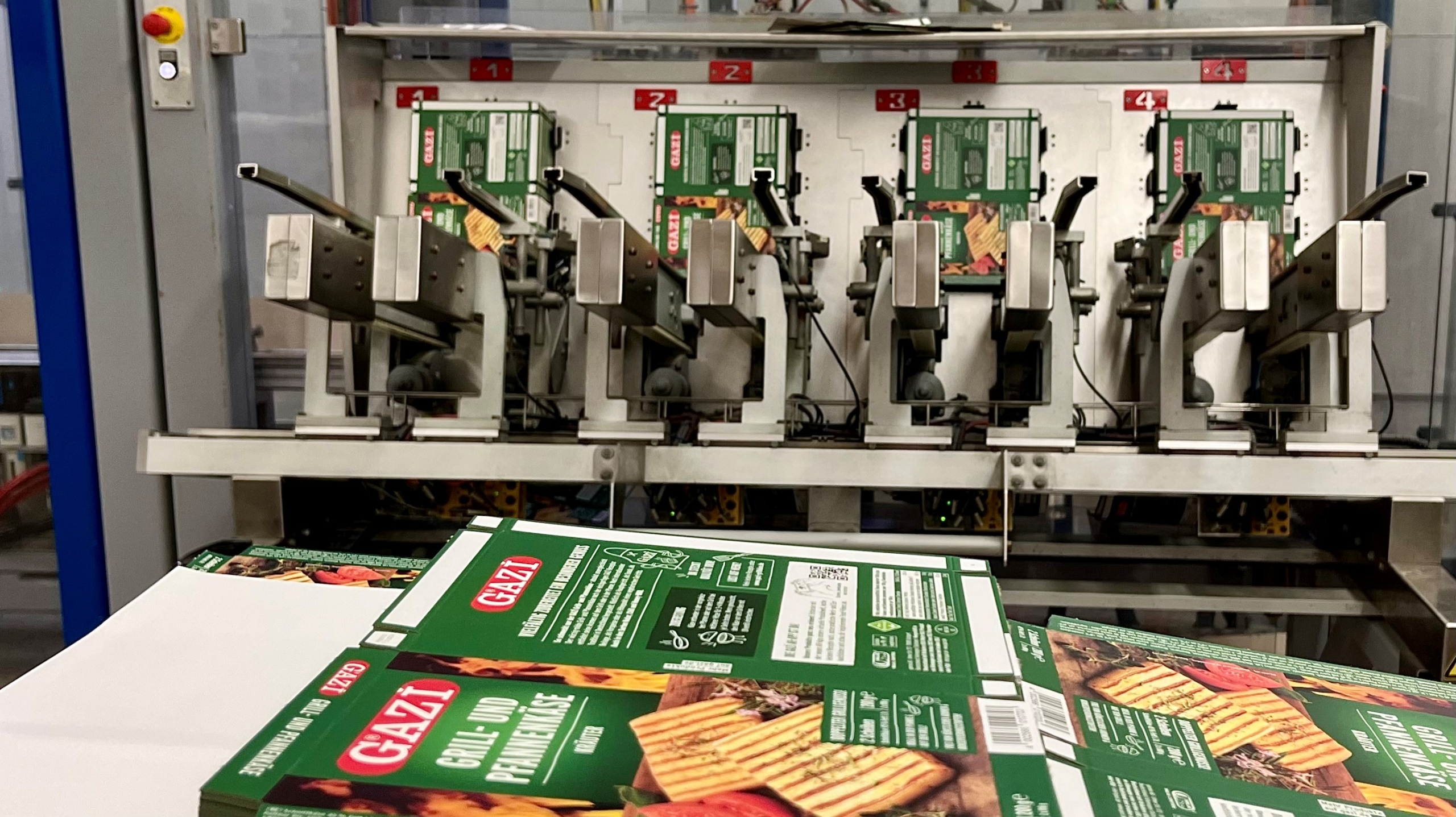 En endeløs bane af hvidt materiale glider kontinuerligt gennem produktionshallen i Crailsheim, Baden-Württemberg. Tre kar ved siden af hinanden bliver konstant fyldt med hvide osteblokke af dygtige hænder. En farverig folie dækker emballagen, før den bliver vakuumpakket, forseglet og skåret. Imens dette sker, samler en robot papkasser, som en vakuumgriberarm derefter forsigtigt løfter den ny-indpakkede ost ned i. Osten sendes derefter videre til supermarkeder og discountbutikker over hele Tyskland – både under store mærkenavne og som butikkernes egne mærker.