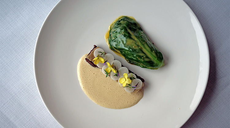 Vinderretten tog udgangspunkt i hovedet fra tunggris fra Troldgaarden. Det blev først modnet og derefter grillet over åben ild i fem-seks timer, inden det blev langtidsstegt natten over. Det møre kød hvilede, blev plukket og formet til en klassisk sylte, som efterfølgende blev stegt sprødt og serveret med grisetrynekiks, fermenterede jordskokker, kålblomster og timian. Hertil kom kål fyldt med svampe fra Dyrehaven samt en cremet sauce på dashi, fermenterede jordskokker, griseører, gran og fermenterede ramsløg. En servering, der vidnede om håndværk og tålmodighed.