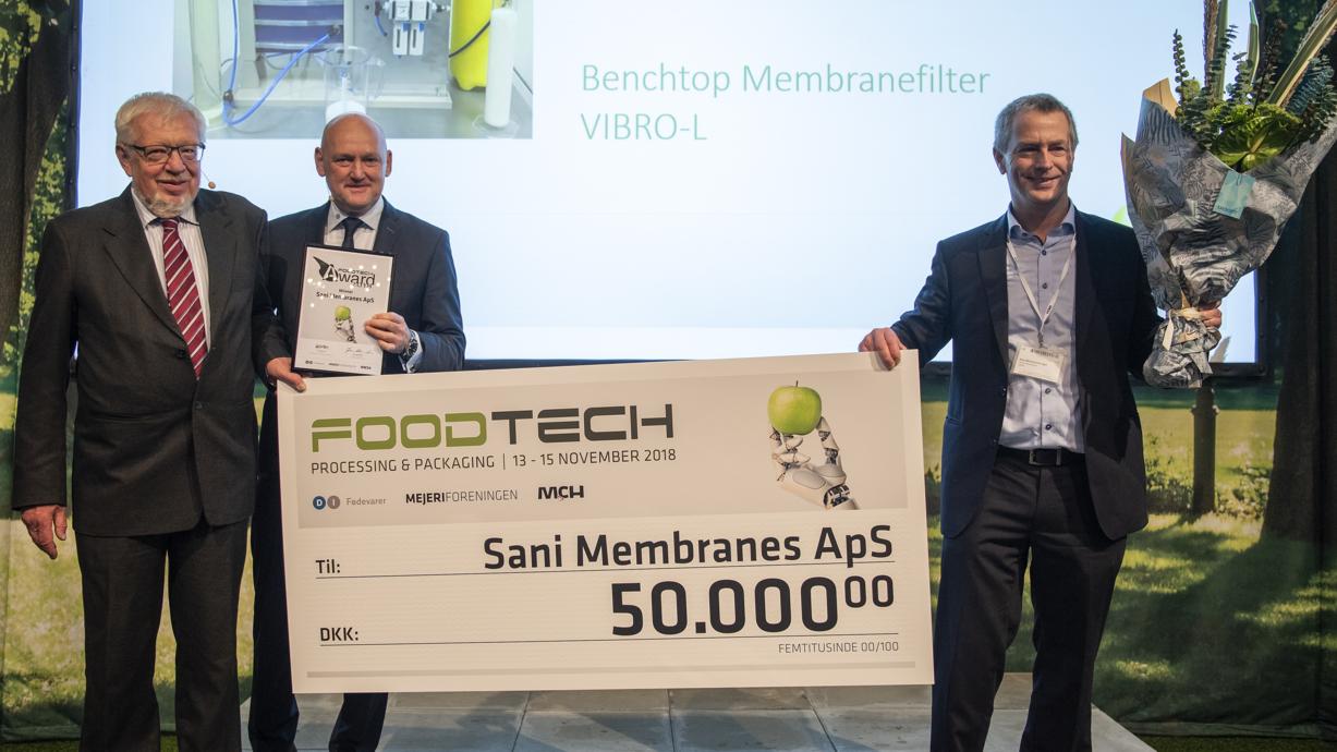 Foruden International Food Contest blev den eftertragtede FoodTech Award også uddelt. Vinderen blev traditionen tro offentliggjort under den officielle åbning af FoodTech, og prisen gik til Sani Membranes fra Allerød, der vandt for sit Benchtop Membranefilter VIBRO-L, et membranfiltreringsprincip.