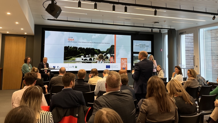 På en konference arrangeret af European Milk Forum mødtes EU-parlamentarikere, forskere og eksperter for at debattere og gøre hinanden klogere på vejen til en mere bæredygtig mejeriproduktion i tråd med EU’s ambitioner.