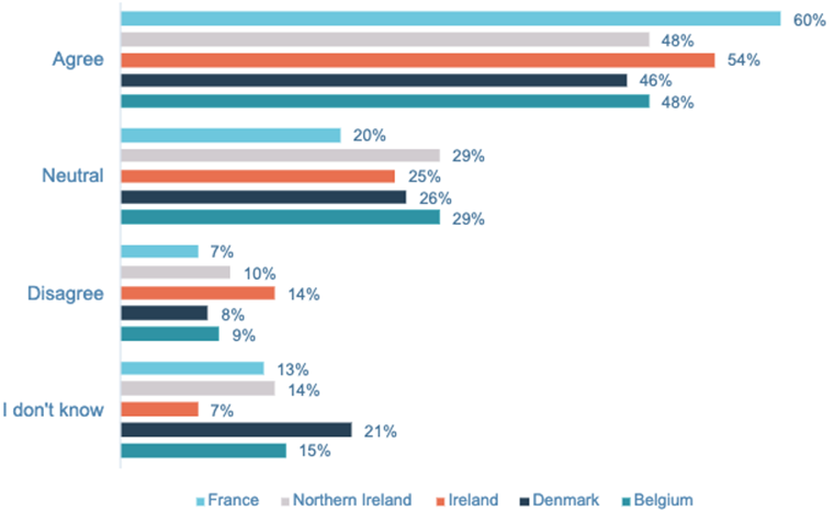 Undersøgelsen blev gennemført af Advice og Norstat i Belgien, Danmark, Frankrig, Irland og Nordirland fra februar til marts 2022. Undersøgelsen blev gennemført blandt repræsentative borgere i alderen 18-99 med over 1.500 respondenter. De eneste undtagelser er Nordirland, hvor antallet af respondenter var 950+, samt i Danmark, hvor respondenterne var i alderen 18-65 år.