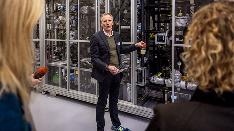 ”Hvis vi skal nå frem til en fremtid med et bæredygtigt kulstofkredsløb uden fossile ressourcer, er den her slags teknologier helt nødvendige,” siger Lasse Rosendahl, professor og direktør for Novo Nordisk Foundation CO₂ Research Center (CORC), der har finansieret og driver anlægget.