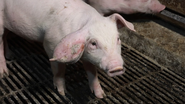 Billederne viser bl.a. en mager pattegris, der sidder fast med to ben i gulvet og forgæves prøver at komme fri. En fikseret so med et stort, åbent sår, hvor en metalbøjle gnider ind i såret. Og flere optagelser viser pattegrise, der ligger rystende og gisper efter vejret.